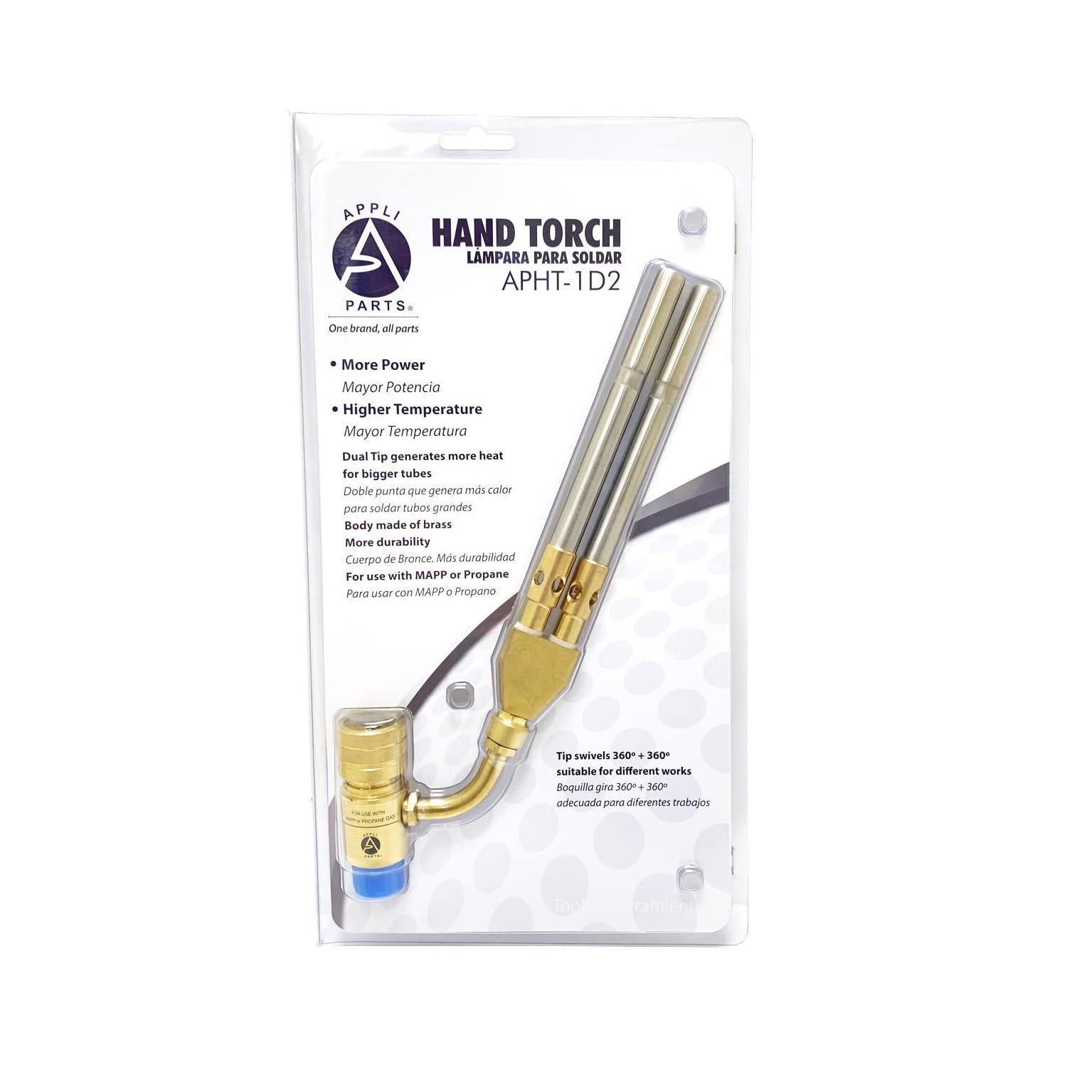 Construction: Brass body and stainless steel tip Application: Used For Copper/Brass Tube And Fittings Welding Up To 4 In Brazing Up To 3 In Use: For plumbing, refrigeration, air conditioning, electrical, professionals and diy soldering/welding applications. Use with mapp or propane tanks. Adaptable to 14.1 - 16 Oz Specs: Standard connection CGA600, 375 PSI max gas pressure, max temperature 2400F, tip rotation 360 degrees Confirm that the dimensions and other attributes of the product closely match those of the original item being replaced