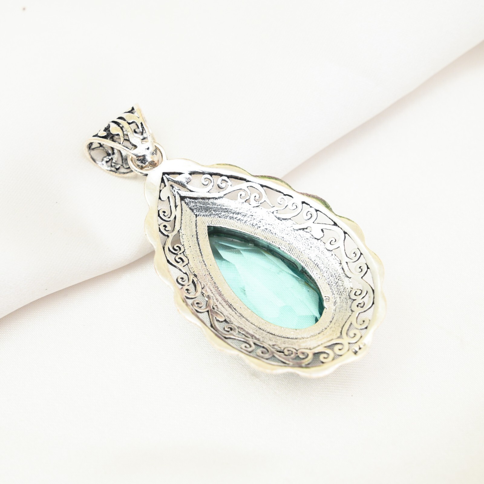 Total Carat Weight:10 carat and aboveSecondary Stone:No StoneColored Diamond Intensity:N/ANecklace Length:2.75 InchesDiamond Color Grade:N/ABase Metal:Sterling SilverNumber of Gemstones:1Theme:Beauty, Bohemian, Ethnic, Halloween, Love, NatureType:PendantFeatures:HandmadeDiamond Clarity Grade:N/AMetal Purity:925Occasion:Anniversary, Birthday, Christening, Christmas, Engagement, Father's Day, Mother's Day, Valentine's Day, WeddingPendant/Locket Type:Same As PictureCountry/Region of Manufacture:IndiaNumber of Diamonds:N/AColor:SilverCertification:N/AClosure:Same As PictureMaterial:GemstoneMain Stone Creation:Lab-CreatedMain Stone Treatment:Not EnhancedSetting Style:Same As PictureBrand:HandmadeMain Stone Color:BlueMain Stone Shape:PearStyle:PendantMaterials Sourced From:IndiaCut Grade:N/ACollection:HandmadeMain Stone:Aqua ApatitePendant Shape:Same As PictureChain Type:N/AMetal:Sterling Silver