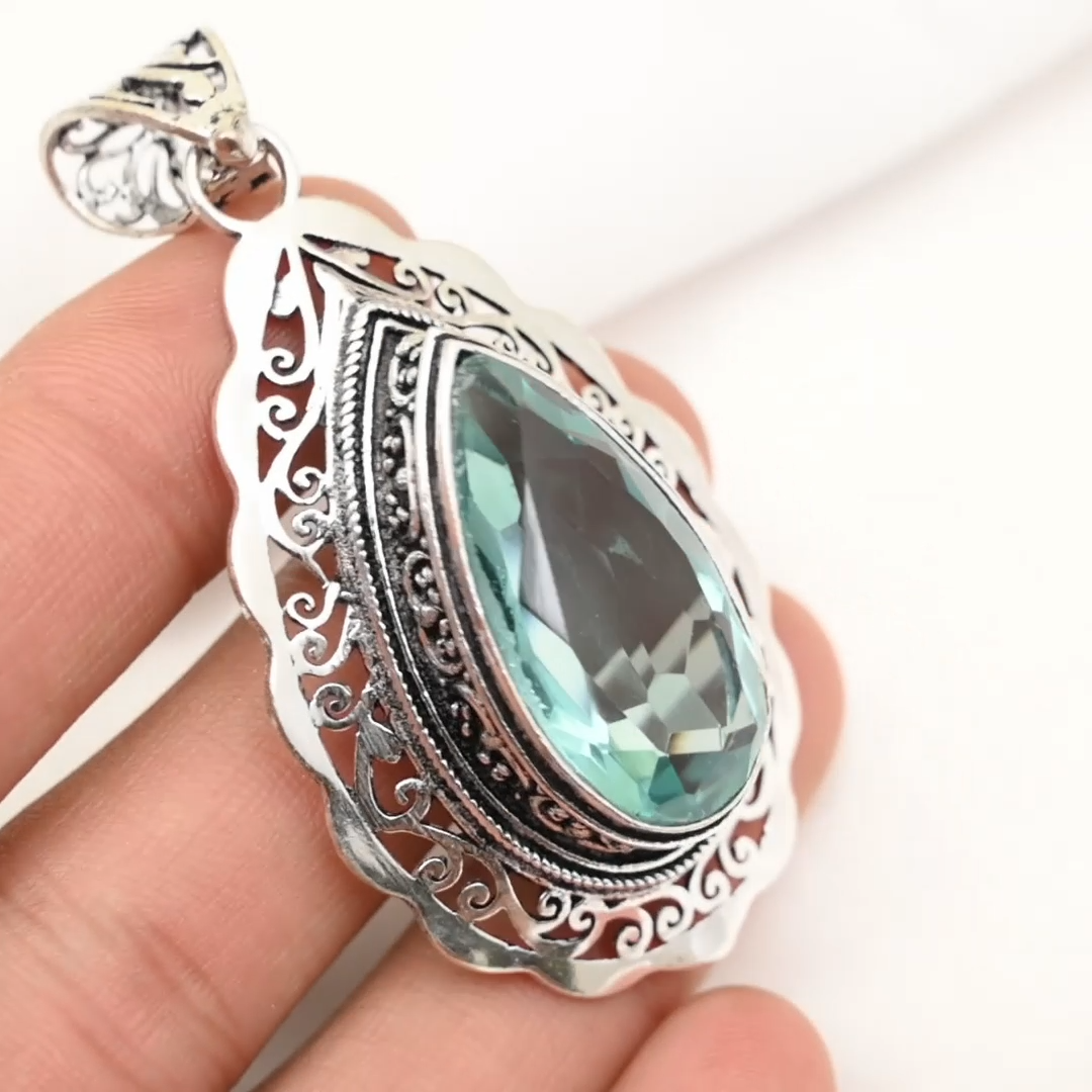 HomeAqua Apatite Pendant Gemstone Handmade 925 Sterling Silver Women's Fine Jewelry