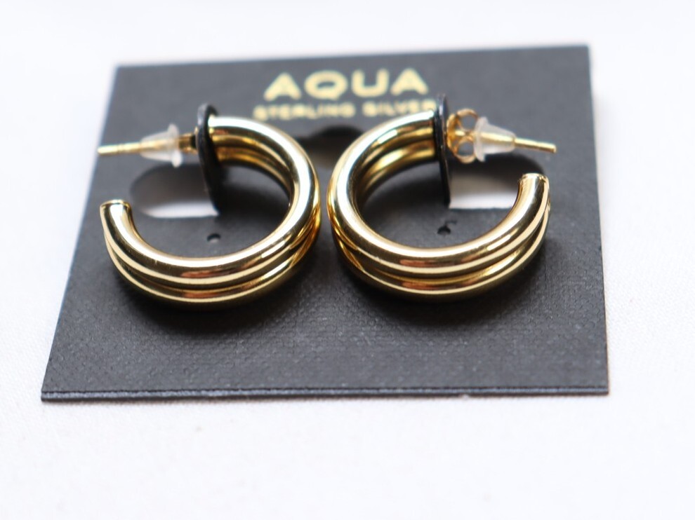 You are bidding on a Aqua Gold over .925 Sterling Silver 6x20mm Double Row Hoop Earrings $95 New. The item is new on card. They are about 3/4" tall. They retail for $95.
