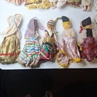 The Arco "Dolls of the World" and Misc. "sleeping eye dolls" dolls Lot includes 18 girl dolls representing various ethnicities and cultures. These vintage dolls from the 1960s are made of cloth and plastic, with articulated bodies and eyes that open and close when they are laying down. The set is perfect for collectors or as a unique gift for any occasion, showcasing a diverse range of characters from around the world. Most of these dolls are a part of the Arco franchise, making them a special addition to any doll collection. Dolls have standard wear for their age. Such as some are suffering minor hair loss, wrinkled dresses, and loose fittings such as clothing and hats. Minor scratches on feet. Please refer to the many pictures for more specific detail.
