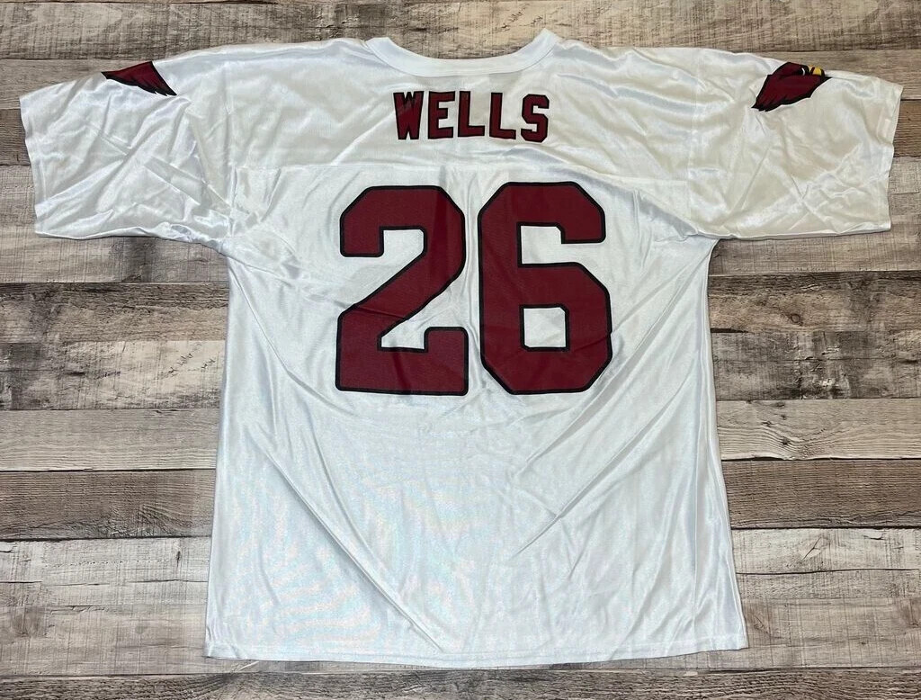 Up for sale is a Beanie Wells jersey in size large, please see the photos for measurements. INFORMATION AND DEFECTS ; CONDITION - Preowned DEFECTS - original tags still attached and a couple of minor defect markings. OVERALL ITEM GRADE - 9/10 *PLEASE SEE PHOTOS FOR AN ACCURATE DEPICTION! Shipping is handled as soon as the order is confirmed, some orders ship the same day. ASK FOR DISCOUNTS , DEALS , AND BUNDLES ! WE ARE OPEN TO NEGOTATION ON NEARLY EVERY ITEM! THANK YOU FOR VISITING OUR STORE !