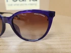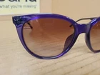 Elevate your style with these designer sunglasses from Armani Exchange. The purple plastic frames and brown tinted lenses make for a striking combination. These women's cat eye sunglasses have an oversized fit, with a temple length of 140mm. The model number 823613 55 is a perfect fit for these stylish frames. The lenses are made with a high-quality tinted technology, ensuring a comfortable and stylish look. These sunglasses are perfect for any occasion, whether it's a day out with friends or a formal event. With the Armani Exchange brand, you can be sure of the quality and style of these sunglasses. * SEE PICTURES FOR CONDITION. There is a small chip in the tint. Not visible while wearing. PLEASE FEEL FREE TO MESSAGE ME IF YOU HAVE ANY QUESTIONS. ALSO CHECK OUT MY OTHER ITEMS AS I DO COMBINE SHIPPING. IF YOU WIN MORE THAN ONE ITEM, PLEASE WAIT FOR INVOICE BEFORE PAYING. PAYMENT IS DUE WITHIN 72 HOURS. IF YOU'RE LOOKING FOR SOMETHING SPECIFIC, PLEASE DON'T HESITATE TO ASK AS I HAVE TONS OF ITEMS I STILL HAVE TO LIST. THANK YOU FOR YOUR INTEREST!