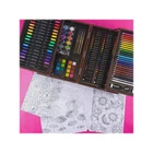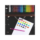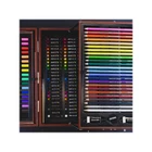 Art 101's 168 Piece Deluxe Art and Doodle Set is the ultimate collection of creative tools for begginer or advanced artists! This set includes 18 of our 2-Tips Markers, which have dual-sided nibs for more doodling and drawing options! Use the bullet nib on side for coloring large sections, and the fine-tip nib on the other side for adding detail. These water-based markers also are great for hand lettering and calligraphy! Our 168 Piece set also includes a multitude of other mediums for coloring and drawing projects! The 72 creamy oil pastels blend beautifully, and are perfect for still life, portraits, or landscape drawings. Our 24 Premium Core Colored Pencils are pigmented and lay down smoothly on your paper, making them perfect for completing the included 5 coloring pages! This case has you covered for painting, too! Use the 24 watercolor cakes or 18 poster paints on your next school project, new canvas, and more! Additionally, 4 paint brushes and 3 paint palettes are included to give you everything you need to get started. This premium case comes with 4 total trays of supplies in a deluxe wood organizer case, make it easy to pack up your supplies and take wherever creativity strikes! What's Included: • 18 - 2 Tips Markers • 24 watercolor cakes • 18 poster paints • 4 paint brushes • 72 oil pastels • 24 Premium Core Colored Pencils • 2 erasers • 1 sharpener • 3 palettes • 1 pack of 5 coloring pages • 1 wooden organizer case Sold as 1 Each. 168-piece kit for coloring and drawing. Use the included poster paints or watercolor cakes for school or personal art projects. Premium wooden organizer case makes it easy to take your art supplies on the go. Dimensions: 10.83"H x 15.1"W x 3.5"D. Set includes: 18 -tip markers, 24 watercolors, 18 poster paints, four brushes, 72 oil pastels, 24 color pencils, erasers, a sharpener, three palettes, a pack of five coloring pages, and a case.