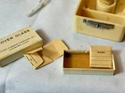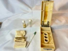 Please stop by our eBay store Sell it Baltimore to check out our other 12,000 items for sale. Our inventory changes daily so please check back often. We are not accepting offers. Prices are as listed. You are buying : Art Deco BARD PARKER Blood Test Kit Dropper Cover Glass Empty Bottles & Cotton Approx: Case Measures : 5 3/8" Long x 2 1/4" Wide x 2 1/8" Tall . Item will need to be thoroughly cleaned. The Bottles are empty, everything shows wear such as discoloration , dryrot ( on dropper bulb) and residue in bottles. Also there is paper taped to inside from previous owner . SOLD AS IS PLEASE SEE ALL PHOTOS FOR CONDITION ASK ANY QUESTIONS PRIOR TO PURCHASE.
