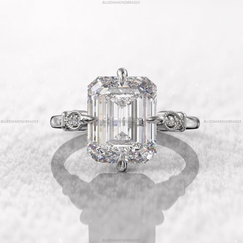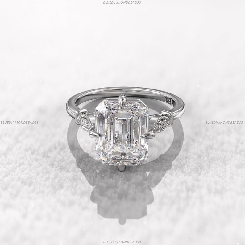 $ 713.86Engagement Statement Ring 14k White Gold Moissanite Diamond Gemstone Jewelry
