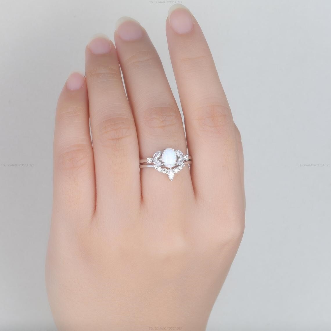 Main Stone: Opalite Main Stone Color: White Metal Purity: 14k Number of Gemstones: As Seen in Picture Band Width: 1.8 Occasion: Anniversary, Birthday, Christmas, Engagement, Graduation, Christening, Confirmation/Communion, Mother\'s Day, Valentine\'s Day Ring Size: 7 Country/Region of Manufacture: India Base Metal: Gold Theme: Beauty, Bohemian, Ethnic, Healing, Love, Luck, Special Occasion, Halo, Love & Hearts Style: Art Deco Shape: Engagement Set Brand: Handmade Color: White Seller Warranty: Yes Gemstone Clarity Grade: Eye Clean Metal: White Gold Features: Engraved, Nickel-Free, Stackable, Handcrafted Setting Style: As Seen in Picture Signed: Yes Main Stone Creation: Natural Type: Ring Main Stone Shape: Oval Country of Origin: India Secondary Stone: Diamond Material: Diamond Cut Grade: Excellent Sizable: Yes Handmade: Yes