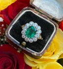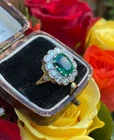 Art Deco Style Victorian Emerald Lab Created Diamond Cluster REAL silver Ring