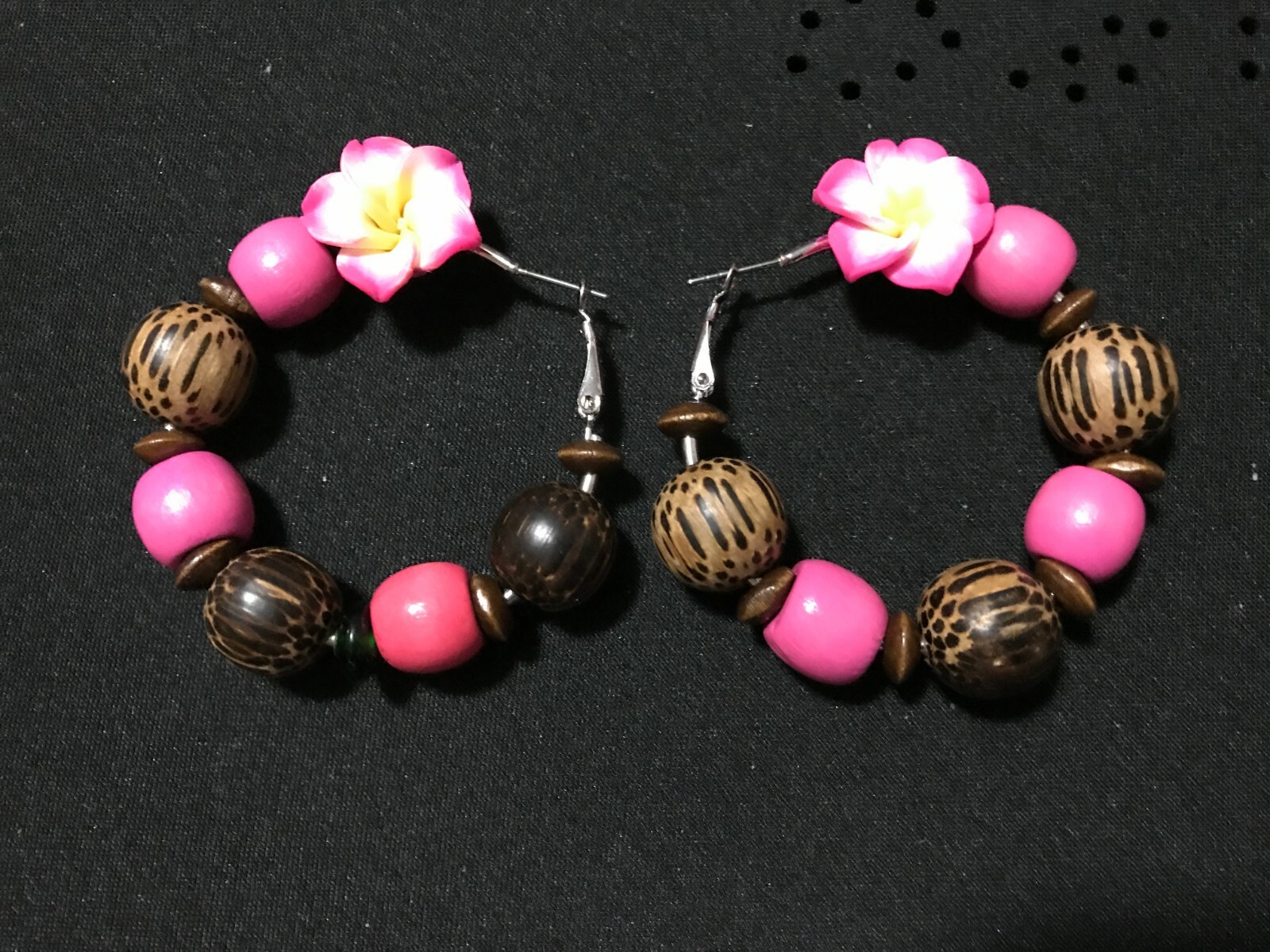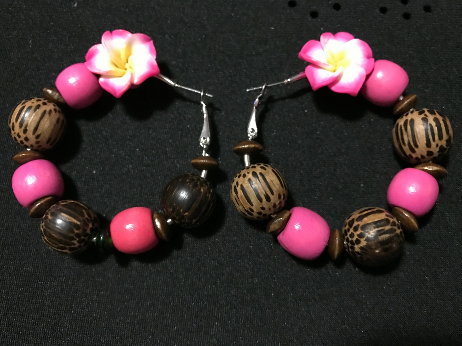 Pretty rustic earrings hoops embellished with (lighter-than-they-look!) pink plastic flower that Capture the beauty of the mother Nature. Wear a little bit of the spring season These earrings are very lightweight , funky and comfortable to wear and will brighten up any casual or beachy outfit. Jewelry Artisan Designed You will receive the exact item you see in the pics. Questions are welcome....