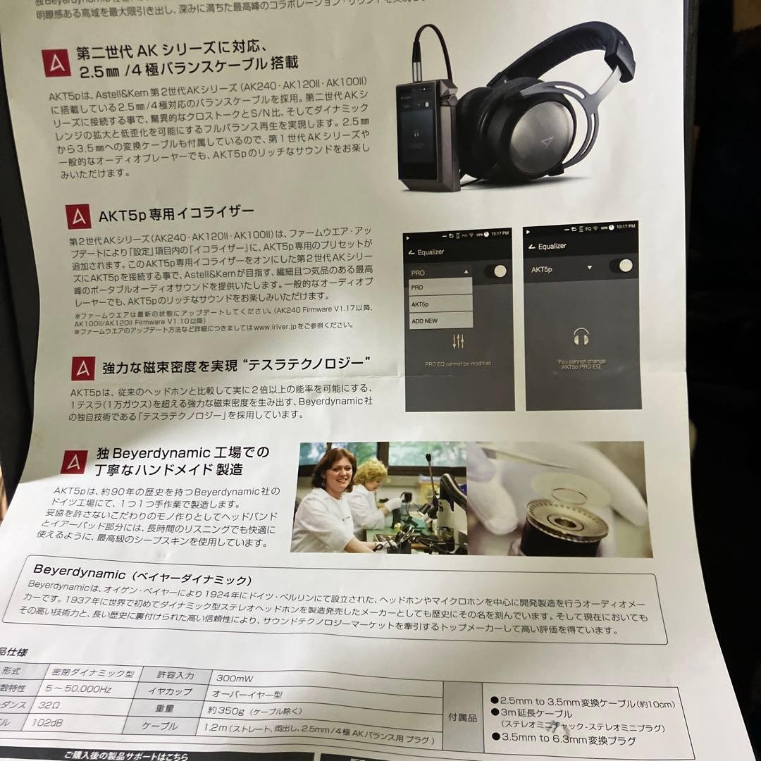 The Astell&Kern AK T5p is a closed-back over-ear headphone developed in collaboration with Beyerdynamic , a renowned German headphone manufacturer founded in 1924. Based on the Beyerdynamic T5p (2nd Generation) , this model features exclusive sound tuning optimized for Astell&Kern devices. It delivers rich and deep bass, clear and detailed midrange, and extended, transparent highs, creating a refined and immersive listening experience. Thanks to its high sensitivity design, the AK T5p performs exceptionally well with portable audio players, including Astell&Kern DAPs, while also benefiting from high-quality amplifiers. Brand: Astell&Kern × Beyerdynamic Model: AK T5p Type: Closed-back Over-Ear Headphones Driver: Tesla Dynamic Driver Driver Size: Approx. 45mm Impedance: 32 ohms Frequency Response: 5Hz – 50,000Hz Sensitivity: 102dB SPL Max Input Power: 300mW Cable: Detachable cable (3.5mm stereo mini) Weight: Approx. 360g (without cable) Features: Sound tuning optimized for Astell&Kern devices High-flux Tesla technology High-resolution and wide frequency response Suitable for portable and desktop use