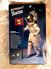 This Barbie doll is a special edition from the Career Collection, manufactured by Mattel in 1994. The doll is dressed as an astronaut and comes with various accessories. It is part of a set that includes both the doll and accessories, and is still in its original, unopened packaging. NRFB. The doll has black hair and brown eyes, and is of African American ethnicity. Box has some wear and plastic is curved in at top from storage - shown in pictures.