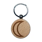Astronomy Moon Astrology Planet Symbol Engraved Wood Round Keychain Tag Charm