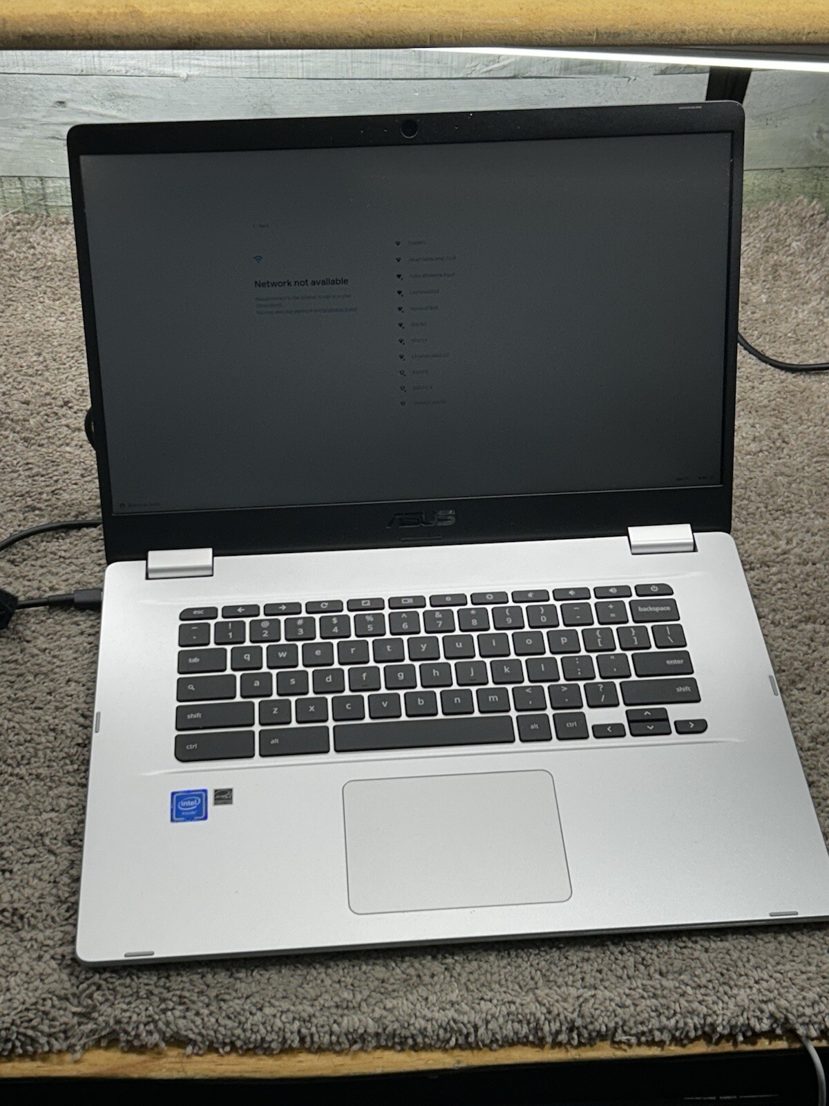 This Asus Chromebook C523NA is a high-quality laptop that runs on Chrome OS. It has a 15.6-inch screen size and a powerful Intel Celeron N3350 processor that ensures smooth performance. The laptop comes in a sleek silver color and has 4GB of RAM size, making it ideal for multitasking. In addition, the laptop has a hard drive capacity of 32GB and an SSD capacity of 32GB, providing ample storage space. It also has a built-in webcam, making it perfect for video conferencing and online gaming. This Asus Chromebook is a great choice for anyone looking for a reliable and efficient laptop Used condition excellent condition comes with original charger and original box as shown in photos hardly used Excellent condition Fast shipping