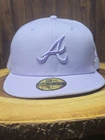 Elevate your headwear collection with the Atlanta Braves New Era 59Fifty Fitted Hat. A staple for any baseball enthusiast, this cap is designed with a solid lavender color that adds a pop of vibrancy to your attire. Sized at 7 5/8, it ensures a comfortable fit that's perfect for game day or casual outings. Crafted by New Era, renowned for their quality and style, this baseball cap is a versatile accessory suited for various occasions, from business meetings to baseball games. Its fitted design promises a snug and secure fit, making it an essential piece in your sports memorabilia collection or your everyday wardrobe.