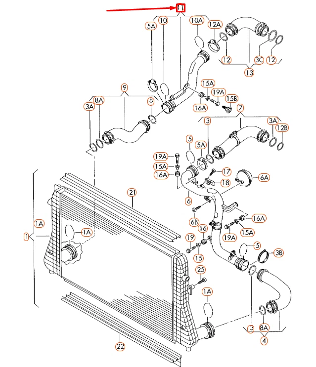 Original Audi A3 8P Turbo Charge Air Cooler Feed Pipe 3C0145828K