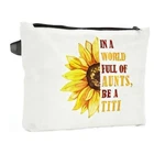Aunt Auntie Gifts, Titi Makeup Bag for Women, TITI Gift from Sunflower Cosmetic Bag, Aunt Appreciation Gift, Christmas Thanksgiving Mother's Day Birthday Gift, for Aunt Titi Travel Toiletry Pouch Product Details Color: White182 Brand: NBIAN MPN: Does not apply UPC: Does not apply EAN: Does not apply Product Dimensions: 6 x 10 x 1.9 inches Item Weight: 1.13 ounces Department: Unisex Adult Manufacturer: NBIAN Country of Origin: China Size : It approximately measures 10 x 6 inches, has enough capacity to hold many small items, portable size that easy to carry around or store into your handbag. Material :This makeup bag is made from 12 oz canvas material.it's easy to clean, it's easy to clean, it can be washed by hand wash,Perfect travel accessories for women! Wide applications: Which has plenty of storage space to store your lots of cosmetics. such as makeup brushes, mascara, lipstick, wipes and so on.Smooth zipper in vantage appearance, tight to protect items in, it can also ensure your items not easy to fall off.It's a perfect travel bags for Women. Interesting Theme: This makeup bag with interesting theme patterns will be a great highlight, adding fun and color to your life, family's lives and friends' lives. Perfect Gift: Fun birthday gifts for friends,friendship gifts,for friends, day gifts ,graduation gifts Christmas gift,housewarming gifts Size : It approximately measures 10 x 6 inches, has enough capacity to hold many small items, portable size that easy to carry around or store into your handbag. Material :This makeup bag is made from 12 oz canvas material.it's easy to clean, it's easy to clean, it can be washed by hand wash,Perfect travel accessories for women! Wide applications: Which has plenty of storage space to store your lots of cosmetics. such as makeup brushes, mascara, lipstick, wipes and so on.Smooth zipper in vantage appearance, tight to protect items in, it can also ensure your items not easy to fall off.It's a perfect travel bags for Women. Interesting Theme: This makeup bag with interesting theme patterns will be a great highlight, adding fun and color to your life, family's lives and friends' lives. Perfect Gift: Fun birthday gifts for friends,friendship gifts,for friends, day gifts ,graduation gifts Christmas gift,housewarming gifts,Suitable for Age 13+ teens and adults