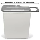 Ideal for light duty shredding in the home or home office. 8 sheet strip cut; 3.2-gallon wastebasket. Shreds credit cards and destroys CDs. Auto start/ stop. Manual reverse for cleaning paper jams. Overheat protection. Security Level P-1.