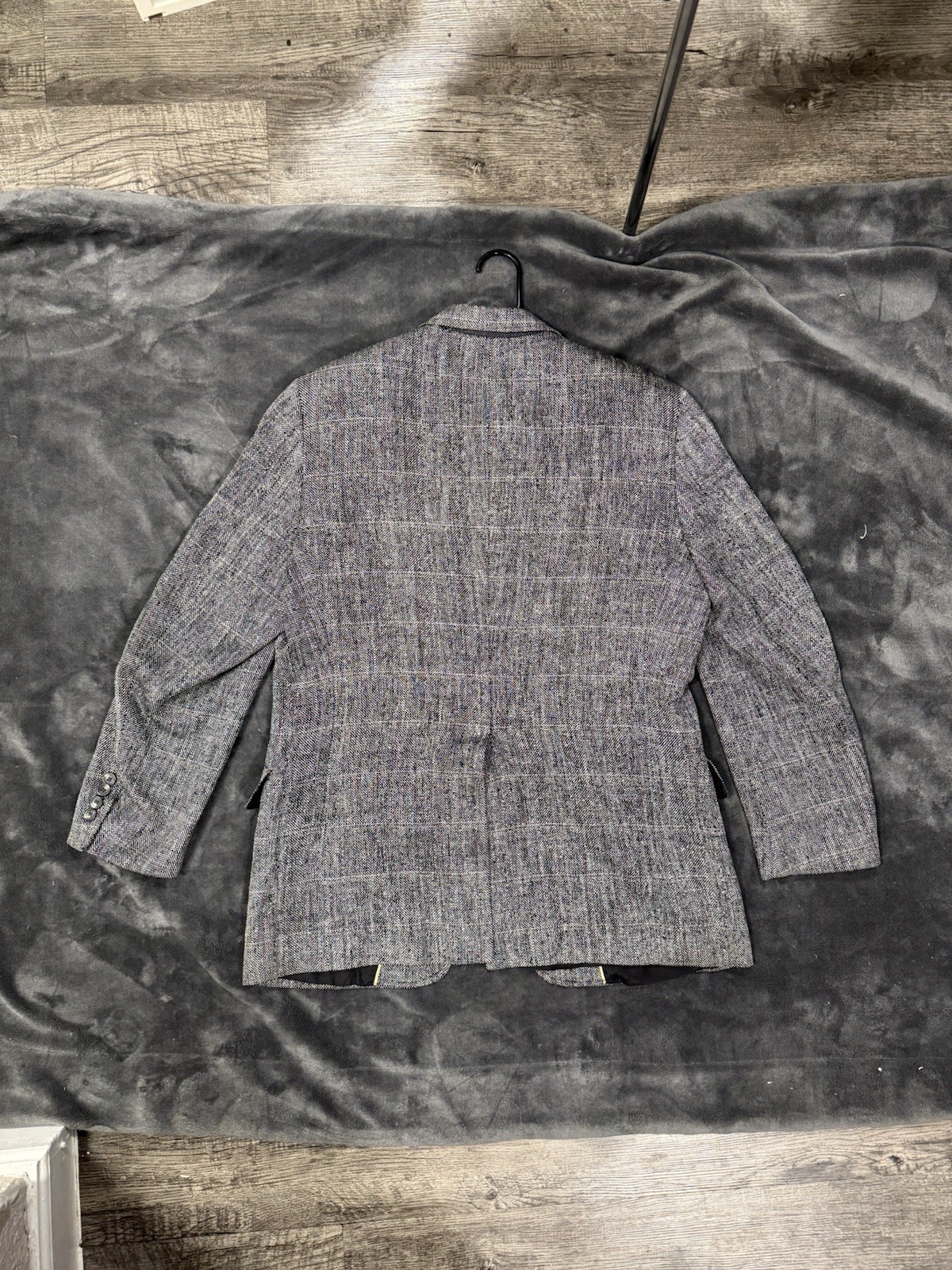 The Austin Reed 100 percent Silk Tweed Plaid Double-Vented Men's Blazer is a classic and sophisticated piece suitable for formal and business occasions. This blazer features a unique four-button sleeve button style and a double-vented back for a stylish and tailored look. Made from high-quality silk tweed fabric in shades of gray, black, and white, this blazer with a two-button front and notch lapel exudes a timeless elegance. Perfect for men who appreciate quality craftsmanship and subtle details in their formal attire, this blazer from the renowned Austin Reed brand is a versatile and elegant addition to any wardrobe.