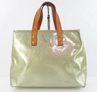Authentic LOUIS VUITTON Reade PM Silver Vernis Leather Tote Hand Bag Purse Item Description Description Name: LOUIS VUITTON Reade PM Made In: France Code: MI1002 (France, October 2002) Color: Silver (color has changed to light gold) Material: Patent leather. Features: One inside zippered pocket. Size in inches (approx.): W 8.65 x H 7.1 x D 4 Size in cm (approx.): W 22 x H 18 x D 10 Handle drop in inches: 4 Handle drop in cm: 10 Comes with: Nothing. Condition Condition Rating: Outside: C Inside: B Outside: Vernis leather has discoloration, vernis come off from stitches, hole and color spot. Inside: Discoloration, spot and stain. Outside Pockets: N/A Inside Pockets: Discoloration. Handles: Discoloration and mildew. Corners: Discoloration. Snaps, Zippers and Hardware: Zipper works fine. Hardware has scratches. Odor: Slight storage smell. Please see pictures for more details Payment and Shipping Information Payment Options: We accept all eBay approved payment methods. Shipping: Shipping is FREE worldwide. All products are sent by EMS (Express Mail Service) or DHL and you will get a tracking number. Sales Tax: Any customs fees, duties and taxes are the responsibility of the buyer. Please contact your country's customs office to find out these costs before bidding or buying. Customer Service & Return Policy: We accept all returns within 30 days of receiving the merchandise. We will refund original payment when the product has returned and is found in the same condition as it was sold, unless otherwise agreed upon. We do NOT refund original shipping charge. Return shipping costs are the responsibility of the buyer. About Us: We have been in the business of selling pre-owned, 100% authentic brand name products for over 20 years. We manage brick and mortar shops in Tokyo, Japan, selling items on consignment. Each item is checked for authenticity by a trained professional. All items were previously owned by Japanese who are famous for taking extra good care of these excellent and beautiful fashion goods. We are a licensed dealer with the Japanese Police Department. Authorization number: 431330028017. Please check the condition and photos carefully before bidding. If you are not completely satisfied with your purchase, Please contact us with any problems or concerns before leaving neutral or negative feedback. We will do our best to make you feel satisfied. Please email me with any questions. Good luck and thanks for looking. Powered by SixBit's eCommerce Solution