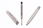 Authentic 925 Silver Ball Pen, Canvas Engraved Finish Black Ink Refill Authentic 925 Silver Ball Pen, Canvas Engraved Finish Black Ink Refill Introducing the exquisite 'Canvas' model ballpoint pen, meticulously crafted in our Grifos silversmith atelier located in Italy. This exceptional writing instrument present itself with a body made from solid sterling silver (925), adorned with intricately engraved guilloché patterns reminiscent of the texture of an artist's canvas. Its sleek and sophisticated design exudes an effortless elegance that is sure to captivate. Experience the luxury of fine Italian craftsmanship with this exceptional pen, meticulously designed for both style and functionality. Don't miss the opportunity to add this timeless piece to your collection or gift it to someone special. Bid now and make this exquisite 'Canvas' ballpoint pen yours!" Rest assured, our discerning clients are investing in truly precious writing instruments, as our company proudly belongs to the Italian Silversmith Guild, ensuring compliance with both mandatory Italian and European regulations. Each pen bears the hallmark of our commitment: a distinguished rhombus-shaped stamp enclosing the mark *675TO, our guild symbol, and oval stamp "925", guaranteeing the authenticity of the solid silver (925) used. Engineered for performance, the ballpoint pen comes equipped with an international standard ballpoint refill crafted with Schmidt technology from Germany, renowned worldwide for their expertise in crafting superior writing mechanisms. Available in black or blue ink upon request, with options for a rollerball refill or mechanical pencil version. The twist cap mechanism offers effortless maneuverability for quick access to the refill point. Your pen arrives securely encased in a luxurious made-in-Italy pen gift box, accompanied by an authentic origin certificate. Plus, we provide lifelong technical assistance for your peace of mind. Enjoy hassle-free worldwide shipping via FedEx, already included in the pen's price, with an average delivery time of 5-7 days. Technical Specifications: SKU: GLB815-NK-GX16 Pen Cap & Body: Solid Silver 925 Pen Fittings: Silver-Plated Pen Refilling: International Standard Refill, Parker Type Pen Origin: Italy Pen Dimensions: Length - 132 mm, Maximum Diameter - 9 mm Pen Weight: 28 grams Don't miss the chance to own this exquisite piece of Italian craftsmanship. Bid now and elevate your writing experience to new heights! Listing and template services provided by inkFrog