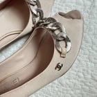 These Chanel pumps are absolutely stunning! The beige leather with silver hardware is so elegant, and the quilted detailing adds a luxurious touch. They fit true to size and are incredibly comfortable for heels. The condition is nearly flawless—just slight wear, but nothing noticeable. Perfect for dressing up any outfit, and the chain detail gives them that classic Chanel charm. Shipping from Japan was fast and secure. Love them!
