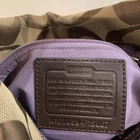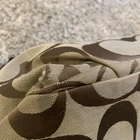This Authentic COACH F15067 Signature C Logo Jacquard Brown Shoulder Bag is a vintage medium-sized square-shaped bag with a zip closure and silver hardware accents. It features a brown leather shoulder strap with a 10-12" adjustable drop, and a classic brown canvas exterior with the iconic Coach logo pattern. The bag also includes a detachable strap and bag charm as accessories, making it perfect for business occasions. Made with quality materials and designed by Coach, this timeless piece exudes designer style and sophistication.