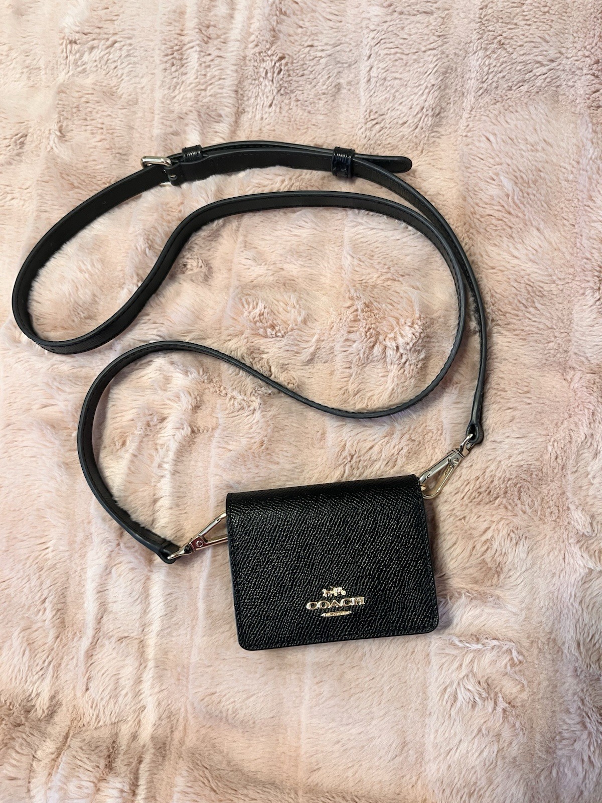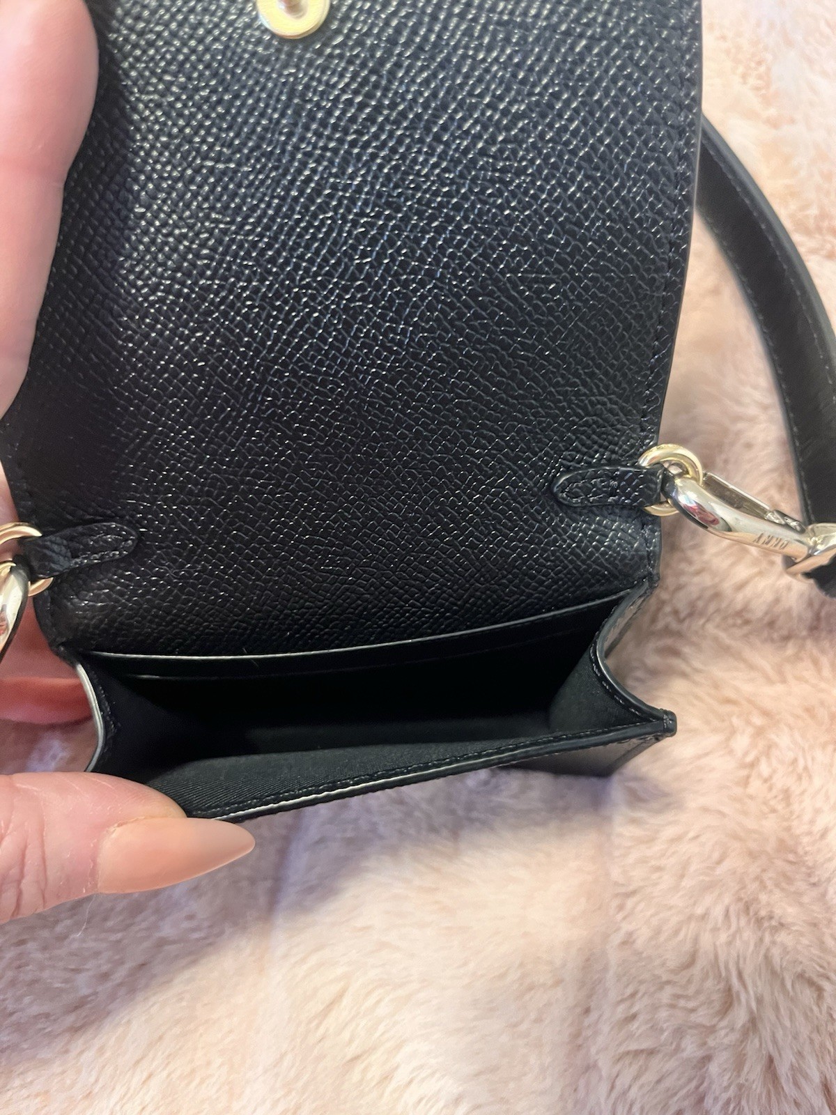COACH New York black leather crossbody bag with silver hardware gold logo #crossbodybag #coach #mini great condition very small (can fit cards and such)