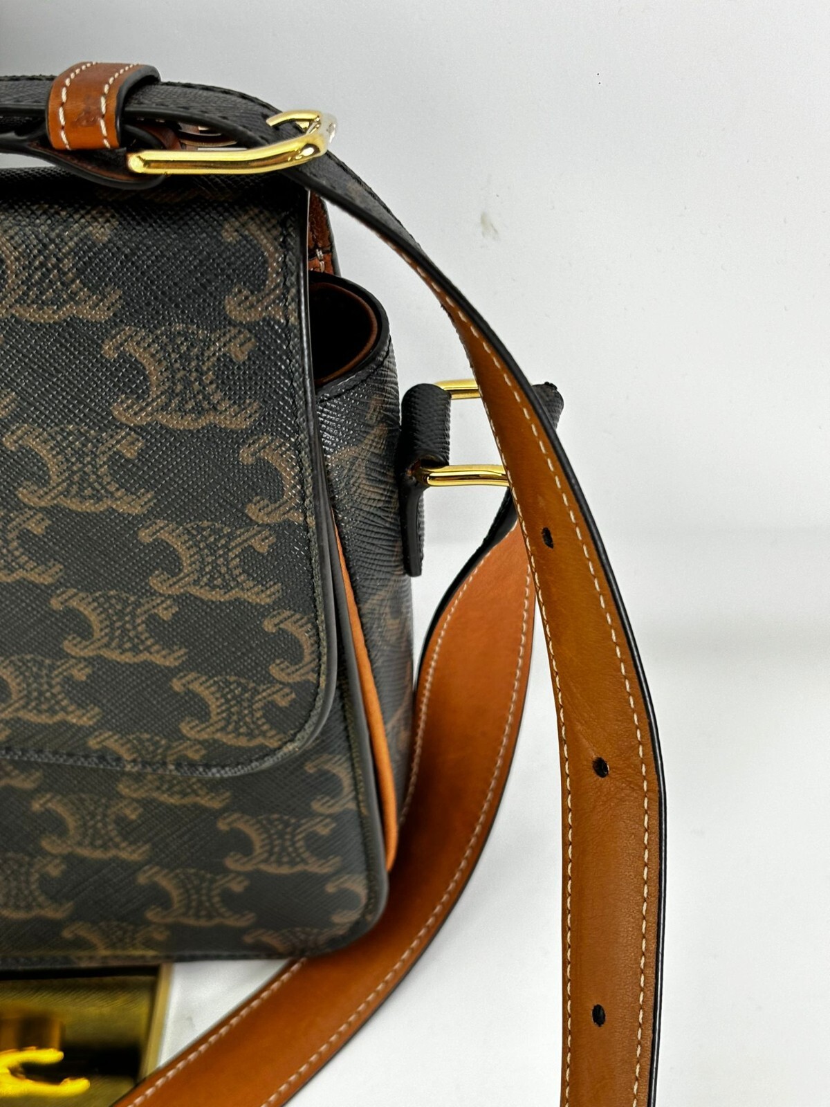 Documento sin título Guaranteed Authentic Celine Triomphe Logos Canvas Calfskin Golden Hardware Shoulder Bag DESCRIPTION: PLEASE REFER TO PICTURES FOR DETAILED CONDITION, IF YOU HAVE FURTHER QUESTIONS PLEASE LET US KNOW. The bag is in excellent condition. The canvas is in excellent condition. The inside is in great condition. It still has some protective plastic on hardware. You will love this beautiful bag. Flap closure Interior with 3 inner pockets, 2 separate compartments and a zip compartment Made in Italy MEASUREMENTS AND SERIAL NUMBER: (LxHxD) 8.8 x 7 x 2.5 inches Serial number / Date code: S-PB-5119 PAYMENT: Payment must be received within 3 days, unless you have notified me for a pre-arrangement within 3 days. SHIPPING AND HANDLING: All items are shipped within one business day as soon as the payment is cleared. Note I do not ship on weekends or holidays. I only ship US Priority Shipping (with signature confirmation and insured) which usually takes 2-3 business days based on Buyer's location (weekends and holidays does not count as business days). TERMS: Your satisfaction is my #1 priority. If you have an issue with your item, please contact me and I will work with you to resolve any issues. If you want to return the item for a full refund, you can return it within 3 days of the date received. Please do not leave neutral or negative feedback as I would work my best for your satisfaction. If you have zero or less than five feedback, please contact me prior bidding. CONTACT: Please contact me for questions through Ebay messages and I will answer you within 24 hours. AUTHENTICITY: This item is guaranteed authentic or your full money back. Every item is verified in-house by our experts and then verified by Ebay Authenticity Guaranteed Service. In order to avoid unnecessary returns, please view the photos and read the description carefully. If more pictures are needed, please let me know and they will be send within 2 days. Return must be in the same condition. ABOUT ME: Viteris Finds is a luxury goods company, based in South Miami, Florida. I have 13 years experience buying and selling authentic high brands items, all from handbags, wallets, travel pieces and accessories. I have worked on my own and now is time to start selling on Ebay, I want to build a good, trusted reputation and my main goal will be to provide you with the best items at a great price. Save me as seller as i will list great items through time. LEGAL DISCLAIMERS: I'm not an authorized dealer or associate of CELINE or any of the designers, brands, or manufactures that are offered in my auction. All trademarks, brand names, and logos mentioned are used for identification purposes only and are registered trademarks of their respective owners who reserve the right of ownership. The use of any trademark, brand name or product in my listings is not intended to suggest that the company, trademark or brand is affiliated or endorses this auction. All photos are the actual item and were taken by me and are only included on the listing for presentation purposes only. I'm selling a personal item as a second party. VeRO (Verified Rights Owner) , intend to VeRO program members, this item has been in a prior authentication by a third party expertise, and i suggest to the buyers on how to authenticate my items before and after purchase. I guaranteed its authenticity or I offer the money back to the buyer. If further information or pictures are needed by VeRO members please let me know. Thanks THANK YOU FOR WATCHING AND HAPPY BIDDING
