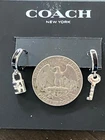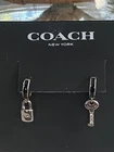 Coach - Quilted Padlock Key Mismatched Earrings Silver plated . These earrings feature mismatched padlock and key charms adorned with the brand's monogram and delicate colorless crystals. 100% authentic or your money back.