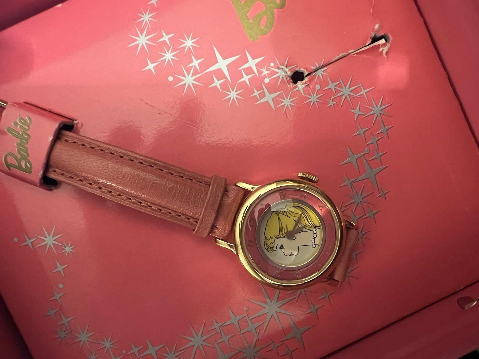 Authentic Fossil Barbie Pretty In Pink Watch In Tin Box 1994 Limited Edition . Condition is Pre-owned. Shipped with USPS Ground Advantage.