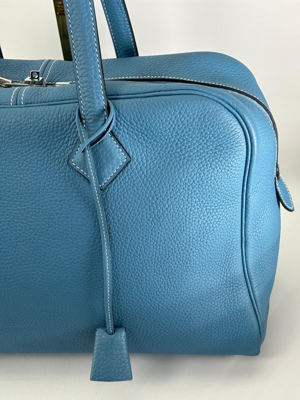 Documento sin título Guaranteed Authentic Hermes Victoria II Blue Jean Taurillon Clemence Leather Tote Hand Bag DESCRIPTION: PLEASE REFER TO PICTURES FOR DETAILED CONDITION, IF YOU HAVE FURTHER QUESTIONS PLEASE LET US KNOW. The bag is in greatcondition. The leather is in great condition. The interior is in great condition. The corners show some rubbing.. You will love this beautiful bag. Blue Taurillon clemence leather Canvas lining Made in France MEASUREMENTS AND SERIAL NUMBER: (WxHxD) 14" x 9" x 6.5" inches. Handles drop 8.5 inches Serial number / Date code: Square R PAYMENT: Payment must be received within 3 days, unless you have notified me for a pre-arrangement within 3 days. SHIPPING AND HANDLING: All items are shipped within one business day as soon as the payment is cleared. Note I do not ship on weekends or holidays. I only ship US Priority Shipping (with signature confirmation and insured) which usually takes 2-3 business days based on Buyer's location (weekends and holidays does not count as business days). TERMS: Your satisfaction is my #1 priority. If you have an issue with your item, please contact me and I will work with you to resolve any issues. If you want to return the item for a full refund, you can return it within 3 days of the date received. Please do not leave neutral or negative feedback as I would work my best for your satisfaction. If you have zero or less than five feedback, please contact me prior bidding. CONTACT: Please contact me for questions through Ebay messages and I will answer you within 24 hours. AUTHENTICITY: This item is guaranteed authentic or your full money back. Every item is verified in-house by our experts and then verified by Ebay Authenticity Guaranteed Service. In order to avoid unnecessary returns, please view the photos and read the description carefully. If more pictures are needed, please let me know and they will be send within 2 days. Return must be in the same condition. ABOUT ME: Viteris Finds is a luxury goods company, based in South Miami, Florida. I have 13 years experience buying and selling authentic high brands items, all from handbags, wallets, travel pieces and accessories. I have worked on my own and now is time to start selling on Ebay, I want to build a good, trusted reputation and my main goal will be to provide you with the best items at a great price. Save me as seller as i will list great items through time. LEGAL DISCLAIMERS: I'm not an authorized dealer or associate of HERMES or any of the designers, brands, or manufactures that are offered in my auction. All trademarks, brand names, and logos mentioned are used for identification purposes only and are registered trademarks of their respective owners who reserve the right of ownership. The use of any trademark, brand name or product in my listings is not intended to suggest that the company, trademark or brand is affiliated or endorses this auction. All photos are the actual item and were taken by me and are only included on the listing for presentation purposes only. I'm selling a personal item as a second party. VeRO (Verified Rights Owner) , intend to VeRO program members, this item has been in a prior authentication by a third party expertise, and i suggest to the buyers on how to authenticate my items before and after purchase. I guaranteed its authenticity or I offer the money back to the buyer. If further information or pictures are needed by VeRO members please let me know. Thanks THANK YOU FOR WATCHING AND HAPPY BIDDING