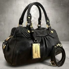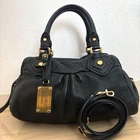 H18cm (7.09 in) W30cm (11.81 in) D15cm (5.91 in) Handle 35cm (13.78 in) The Authentic Marc by Marc Jacobs Classic Q handbag is a vintage black leather shoulder bag with a trapezoid shape. It features gold hardware accents, a zip closure, and an adjustable black leather strap. This small-sized handbag is perfect for various occasions such as business, casual, travel, and workwear. With inner pockets and a fabric lining, it offers both style and functionality. Made in Japan, this classic handbag from the Marc by Marc Jacobs product line is a timeless accessory for any woman's wardrobe.