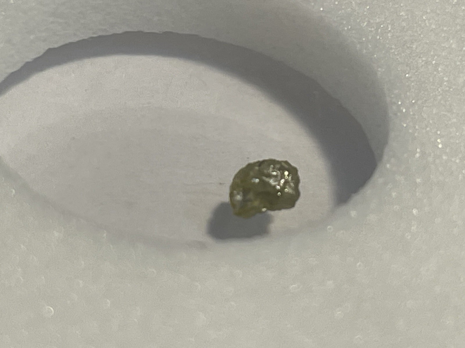 The product is a natural diamond crystal cube with an approximate weight of .10 carats. This authentic and unique piece is slabbed for display and collectors. Natural diamond crystal cubes are rare and valuable findings, making this a valuable addition to any collection of crystals and mineral specimens. With its natural shape and beautiful shimmer, this diamond crystal cube is sure to be a prized possession for any collector.