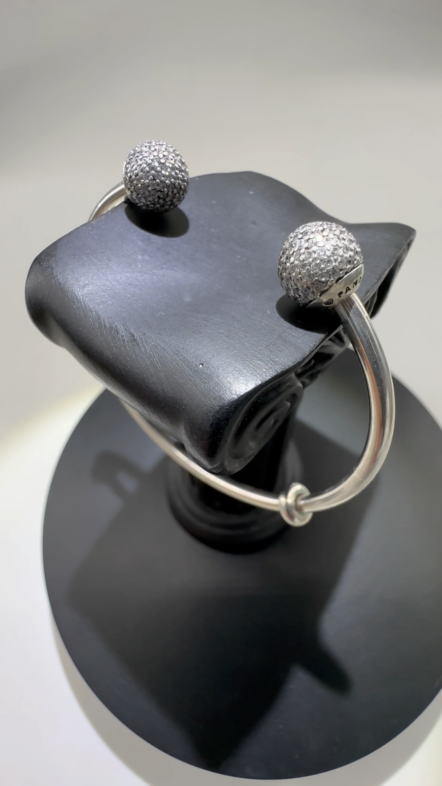Authentic PANDORA Open Bangle CZ Silver Bracelet S925 ALE Sterling Silver
