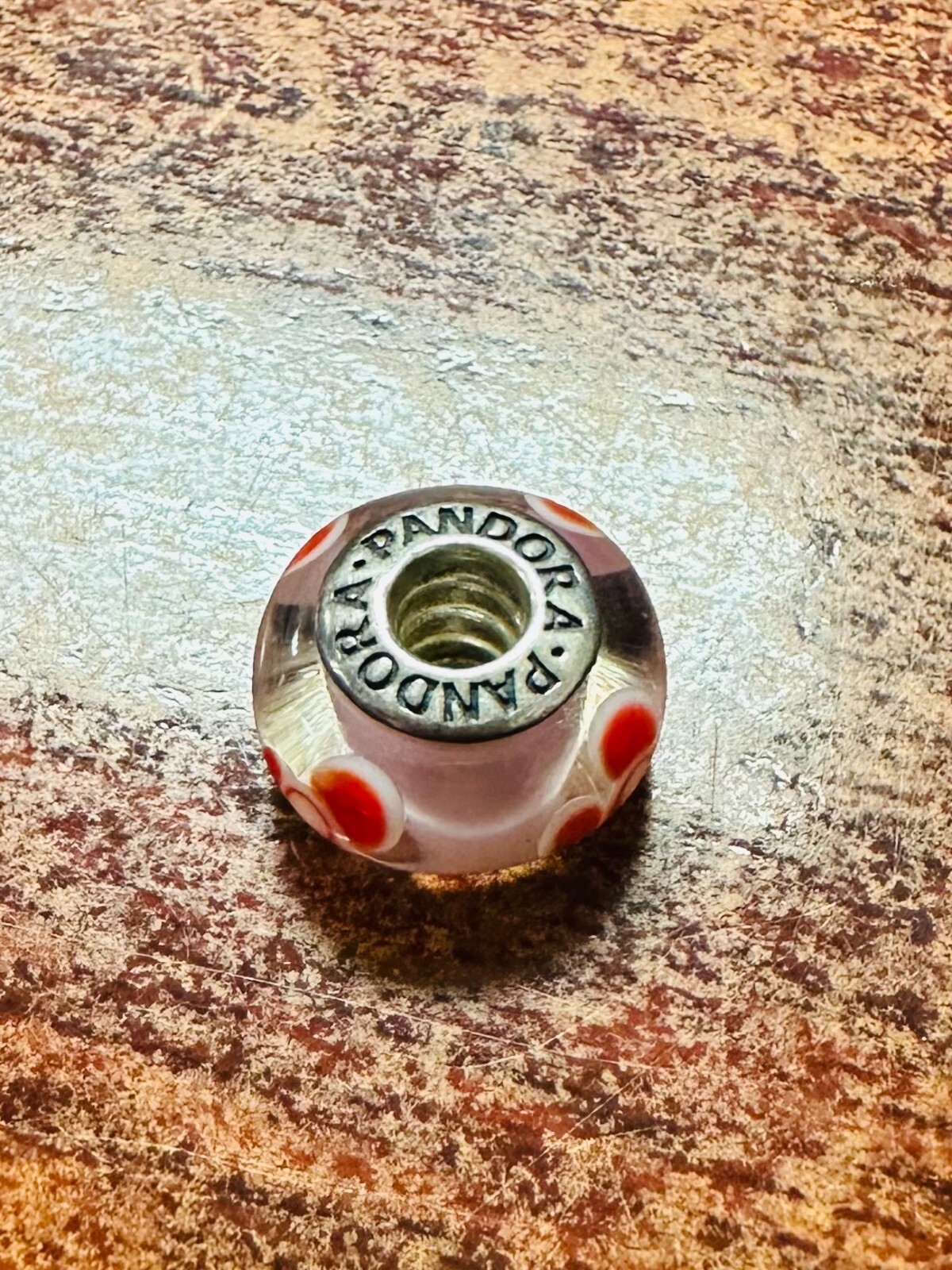 Authentic Pandora Pink with Orange Daisies Murano Glass Beads Like New Condition