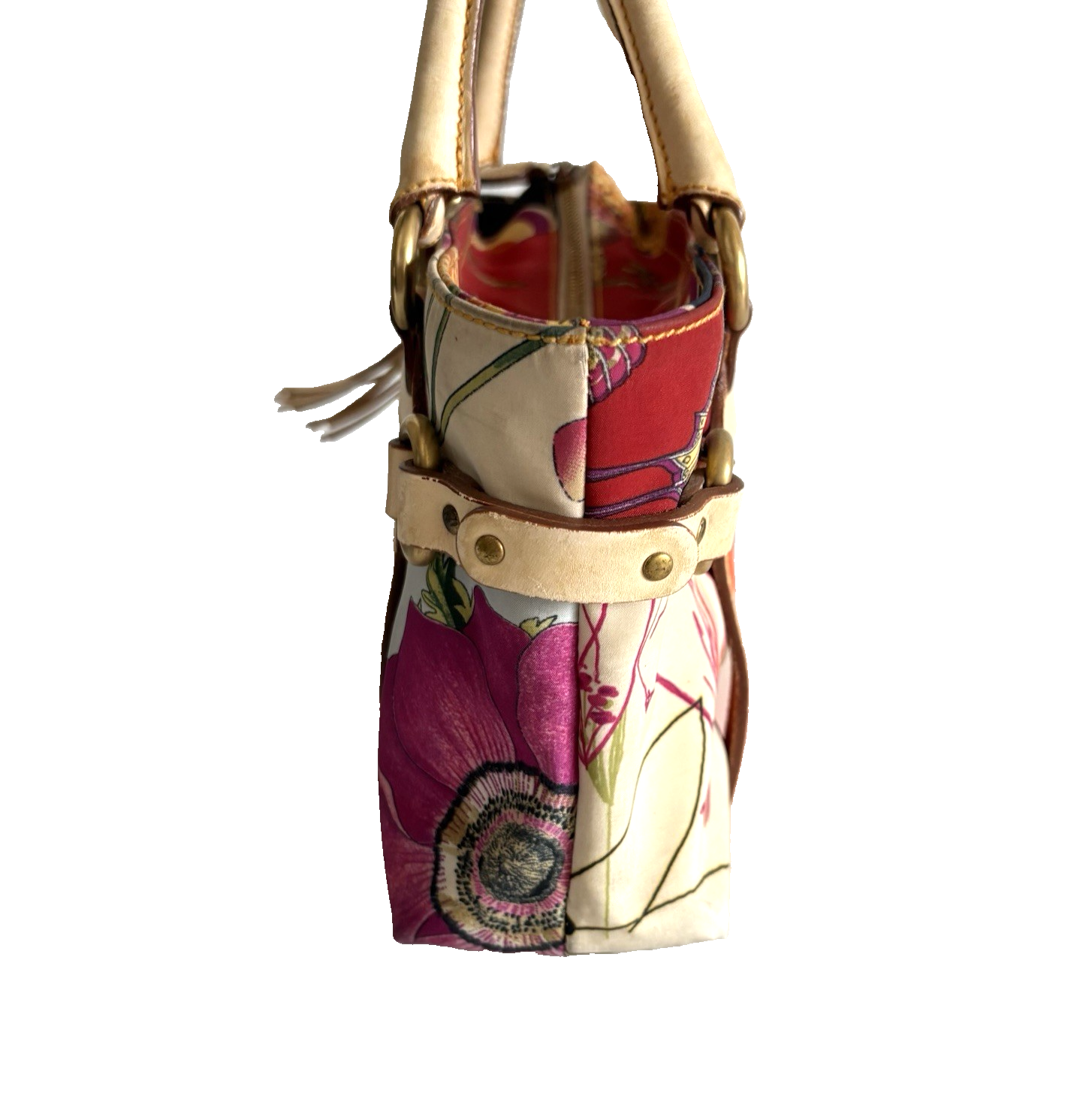 Michael Kors Beige/Brown Leather Canvas Satchel Bag MK Logo w/ Detachable Strap
