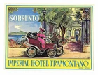 Great authentic vintage luggage label: Imperial Hotel Tramontano Sorrento, Italy Measurements: 5" x 3 5/8 " (12.70 cm x 9.21 cm ). Nice bright label with fun vintage graphics - I love this old car! Early, too; probably 1920s/early 1930s. Overall condition is very good. I always have lots of labels in my current inventory. Purchase multiple labels and all ship for ONE low price! Your item will be shipped in a Stay Flat Mailer or similar to ensure the safest delivery. International bidders welcome! And your satisfaction is always guaranteed! If not as advertised, simply return to me within 14 days for a full refund of your purchase price. Thanks for shopping with Sophie and Smedley!