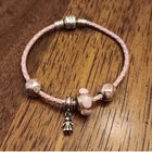 Crafted for elegance and personal expression, this authentic Pandora charm bracelet is a delightful addition to any jewelry collection. It features a soft pink hue that complements its silver accents, offering a touch of sophistication for any outfit. The combination of leather and metal creates a unique appeal, making it a versatile piece for both casual and formal occasions.With its classic charm style, this bracelet is designed to be a timeless accessory or a special gift. Each link and accent piece reflects the quality and attention to detail that Pandora is known for, ensuring that this bracelet is a piece she'll cherish for years to come.