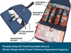 【KEEP YOUR TOILETRIES ORGANIZED & SEPARATELY】This travel case with multiple elastic straps organize all items separately and fit all types of travel accessories. The Grab All mesh pockets with zipper secure all essentials, never be afraid of anything falling out, also easy to see and find what you need, what's left to pack. 【MORE THAN A TOLIETRY BAG】This travel organizer is versatile, with 1 zipper, detach the waterproof pocket, and it becomes a mini shower bag, you can hang it anywhere separately. The spill-proof bathroom pouch is also equipped with elastic straps is perfect for shower, shaving, and grooming items. The see-through compartment is also TSA friendly. 【EASY TO USE, CARRY & STORE】Say goodbye to bulky toiletry bags, unroll the compact dopp and lay flat for easy access , or easily roll it up into compact, lightweight bag. Go small or pack big by easily adjusting webbing and buckle. Carry it anywhere you want, grab the handle, pack in suitcase, carry in a backpack, or just grab and go. 【HIGH QUALITY MATERIALS】This functional toiletry kit is made of high quality ripstop nylon, outside coated with water-resistant film, back with PVC waterproof coating. Plus equipped with lightweight and durable POM plastic buckles, durable elastic webbing bands, waterproof zipper, thick and sturdy nylon webbing straps, all these features provide professional performance. 【YOUR PERFECT TRAVEL PARTNER】Not only serves you in hotel room but also loves outdoors. This smart wash case will be your perfect travel partner for overnight staying, gym shower, camping, backpacking, or driving tour, you will enjoy the trip and love it.