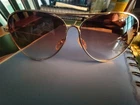 The Avon Mark Aviator Sunglasses in Goldstone come with a coordinating bag for easy storage. These sunglasses feature a classic aviator style, perfect for adding a touch of retro flair to any outfit. The goldstone color adds a touch of glamour, making them versatile for both casual and dressier occasions. The Avon brand ensures quality and style in this must-have accessory for any fashion-forward individual. Please email me before bidding if you have questions. And as always Happy Ebaying.