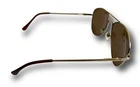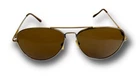 Look cool and stylish with these classic aviator sunglasses. The gold metal frame complements the brown tinted polycarbonate lenses, making them perfect for men and women alike. The sunglasses offer UV400 protection, shielding your eyes from harmful rays. The lightweight sunglasses have a spring frame and a temple length of 141 mm. Designed with the theme of Top Gun in mind, they are perfect for pilots and aviation enthusiasts. Made in China, these sunglasses are a must-have accessory for any fashionable individual. AP