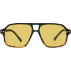 SPECIFICATIONS Block 100% UVA / UVB / UV400 wavelengths : Yes Polarized lenses : No Wrap & Angle : Low Rim: Full Rim Shape: Aviator Material: Acetate FRAME SIZE Frame Width: 148 mm Lens Width: 56 mm Bridge: 16 mm Temple Length: 145 mm Lens Height: 46 mm Frame Weight: 33 grams