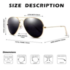 POLARIZED PROTECTION: High-quality polarized lenses effectively reduce glare and provide 99.9% UV400 protection for your eyes during outdoor activities. Classic aviator sunglasses, suitable for driving, cycling, fishing and outdoor activities. PRODUCT DIMENSION – Lens width:58mm (2.28") | Lens height:50mm (1.97") | Bridge width:14mm (0.55") | Frame width:140mm (5.51") | Arm length:135mm (5.31") CLASSIC DESIGN: Timeless aviator frame style suitable for both men and women, featuring a double bridge and elegant metal construction VERSATILE FIT: Adjustable nose pads and temple tips ensure a comfortable, secure fit for different face shapes and sizes DURABLE BUILD: Premium metal frame construction with reinforced hinges for long-lasting daily wear and reliability