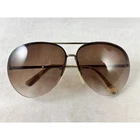 Vintage aviator sunglasses with the Peabody Coal logo on the bottom of the left lens. Metal frame shows some discolorations along the top of the frame, as shown. One arm is inscribed Taiwan ROC and the other arm reads SG 505. The lenses themselves are clean and free of noticeable scratches. Temples are tight.