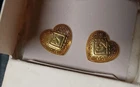 These Avon earrings feature a heart-shaped design with the letter "J" inside, made of gold-toned metal with surgical steel closure. They are suitable for various occasions like Mother's Day, Christmas, and birthdays. The earrings have a stud style and are designed for the earlobe. The personalized touch adds a sentimental value, making them a perfect gift choice. LOOK AT PHOTOS, BOX IS REALLY SQUISHED!