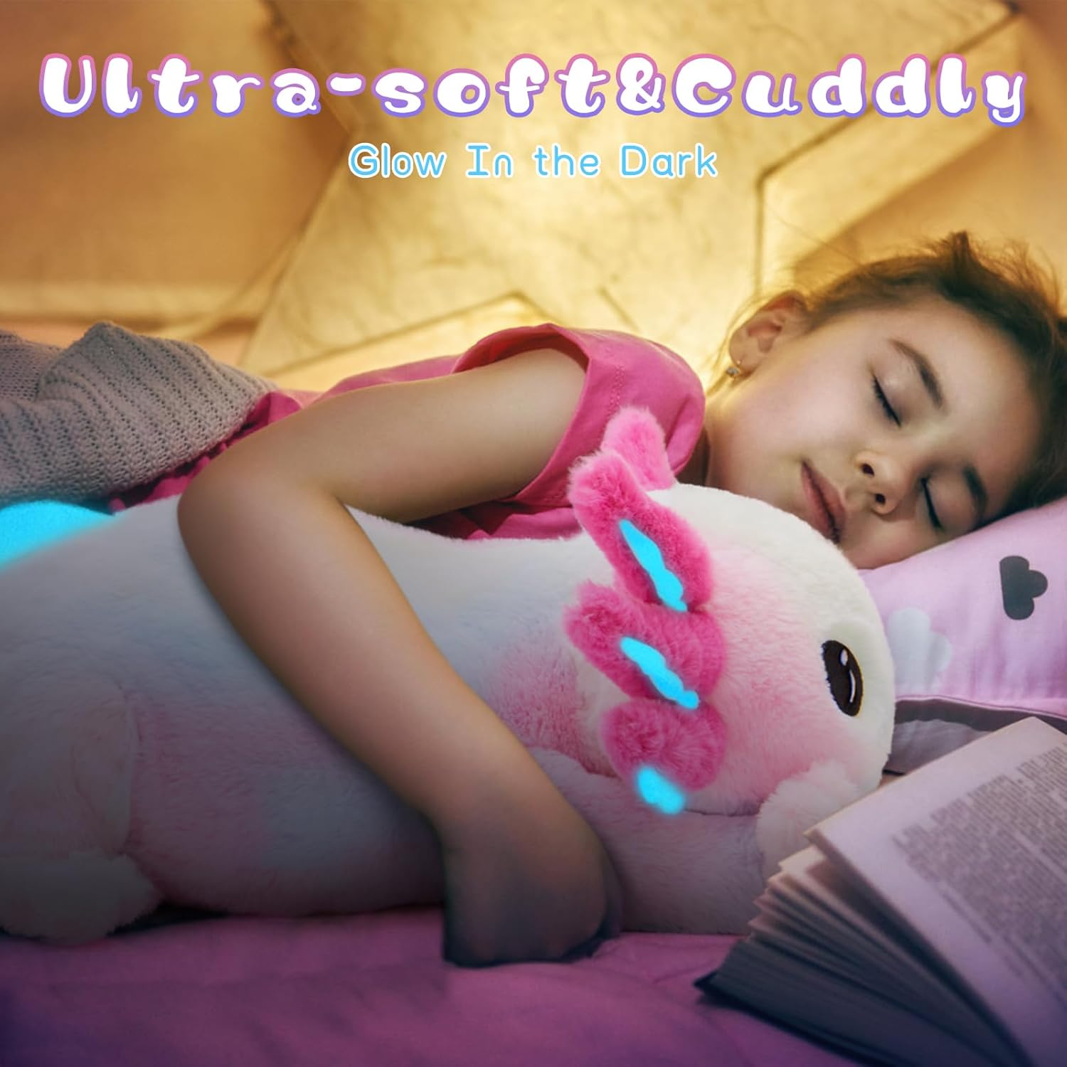 Store New Arrivals Add to Favorite View Feedback Contact Axolotl Stuffed Animal Glow in the Dark for Kids,31.5" Huggable Soft Salamander Plush Pillow Toy with 4 Babies Kawaii Axolotl Plushies for Birthday Gifts,Rainbow Description Item model number W503_9_81 Style Rainbow Axolotl Product Dimensions 32 x 11.8 x 7.9 inches Item Weight 1.52 pounds Manufacturer recommended age 36 months - 20 years Cute Axolotl Family: This 31.5" giant plush axolotl comes with a surprise in her tummy. When you open the zipper, you will find 4 little babies are inside.The 5- in-1 family design is interesting and amazing for salamander lovers. Soft&Safe Material: Our big axolotl pillow toy is made of short plush and filled with elastic pp cotton, which is super soft and skin-friendly. It is suitable for cuddling and leaning, adults or kids can feel free to hug our stuffed axolotl pillow to sleep. Glow In the Dark: Just put the large axolotl in the sunlight or lamplight for several minutes, the gill and tail will glow in the dark. The luminous material we used in the axolotl toy has passed safety tests, skin-friendly and soft. Children will be amazed and delighted when they see the luminous plush axolotl. Multifunctional&Gifts: This axolotl plushie is not only a great decorative toy for bed, sofa, chair, desk or couch, but also a nice huggable axolotl body pillow for sleeping. Adults can release stress when huging the soft pillow. It's also a warm playmate to accompany kids grow up. Just give the sweet gift to your loved ones on Christmas, Halloween, Valentine's Day, Children's Day, Easter, Thanksgiving, New Year, or birthday. Warm Tips: Due to transportation needs, the stuffed toys will be packed in a compressed bag. After open the package, you can pat them gently, or blowing the surface plush with hot air of a hair dryer, they will be restored to original shape soon. Product description Tezituor Luminous Axolotl Stuffed Animal with Babies--More Colors Rainbow Axolotl with Blue Light Blue Axolotl with Blue Light Green Axolotl with Blue Light Pink Axolotl with Green Light Mommy&Babies Stuffed Animals for Kids Add to Cart Add to Cart Add to Cart Add to Cart Add to Cart Add to Cart Add to Cart Customer Reviews 4.5 out of 5 stars 406 4.5 out of 5 stars 406 4.5 out of 5 stars 406 4.5 out of 5 stars 406 4.5 out of 5 stars 406 4.5 out of 5 stars 406 4.5 out of 5 stars 406 Price $34.99 $ 34 . 99 $32.99 $ 32 . 99 $34.99 $ 34 . 99 $32.99 $ 32 . 99 $33.99 $ 33 . 99 $32.99 $ 32 . 99 $33.99 $ 33 . 99 Size 31.5 inches 31.5 inches 31.5 inches 31.5 inches 19.7 inches 17.7 inches 17.7 inches Soft&Skin-friendly ✔ ✔ ✔ ✔ ✔ ✔ ✔ Zipper Storage ✔ ✔ ✔ ✔ ✔ ✔ ✔ CPSC Certified ✔ ✔ ✔ ✔ ✔ ✔ ✔ Machine Washable ✔ ✔ ✔ ✔ ✔ ✔ ✔ Gift ✔ ✔ ✔ ✔ ✔ ✔ ✔ ABOUT US We offer the best prices around on high quality products. Our E-store includes media such as books, movies, music and games while offering electronics, toys, sporting apparel, clothing, tools, general home, garden items and more. SHIPPING We are always working hard to ensure your package arrives as soon as possible. Please understand that some factors like weather, high postal traffic, and the performance of shipping companies are outside of our control. We offer free shipping to the lower 48 states and ship within 2 business days of payment, usually sooner. We do not accept P.O. Boxes. Please provide a physical address. RETURNS We offer a 30-Day Return Policy on items which you are not completely satisfied with. You have the option for a full-refund or an exchange of the item. No returns are available on items shipped outside of the USA. PAYMENT We accept PayPal. CONTACT US This page content is yet to come Please ad us to your favorite seller and visit again later Thank You CUSTOMER SATISFACTION We try our very best to make sure every customer is completely satisfied. If there's a problem, message us! We're happy to help.