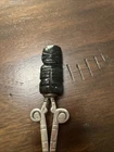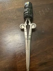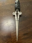 This exquisite letter opener is a true work of art. The intricate Aztec pattern carved on the onyx handle adds a touch of elegance and sophistication to any desk. Crafted with sterling silver, this letter opener is a high-quality tool that will last for years to come. Its origins can be traced back to Mexico, where it was made post-1940. The letter opener is perfect for anyone who appreciates non-U.S. silver and wants to add a unique piece to their collection. Whether it's for personal use or as a gift, this Aztec letter opener is sure to impress. The top is a bit loose.