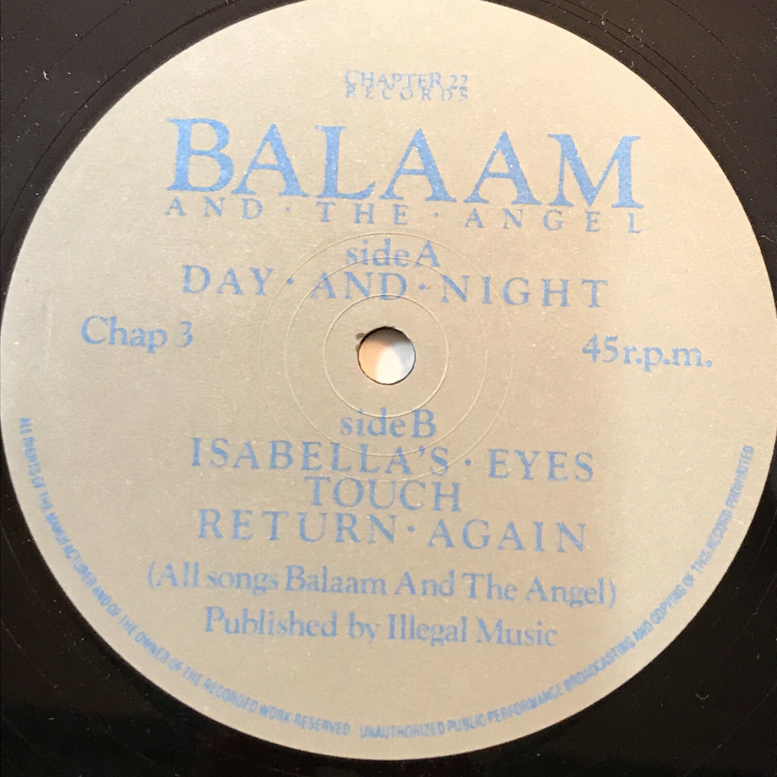 BALAAM & THE ANGEL Day And Night - 1985 UK 4-track 12" vinyl single, also including Isabella's Eyes, Touch and Return Again, CHAP3 Record Condition : Excellent Sleeve : Excellent Please check out our other items !