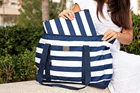 This spacious makeup bag is a game-changer for travel! The waterproof polyester keeps everything dry, and the dark navy stripes look sleek. Fits all my essentials without bulk, and the wristlet makes it super convenient. Perfect for beach trips or gym days—holds bikinis, toiletries, or makeup with room to spare. Sturdy, lightweight, and stylish—love it!