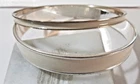 SLIGHTLY OFF WHITE ENAMEL AND SILVER TONE PLATED METAL MATCHING BRACELETS. ONE IS A THINNER WIDTH, THE OTHER WIDER. MEASURES APPROX. SLIGHTLY WIDER THAN 2 1/2" FOR THE OPENING X 1/8" AND 3/8" WIDE. NICE LOOKING, MINIMAL WEAR.
